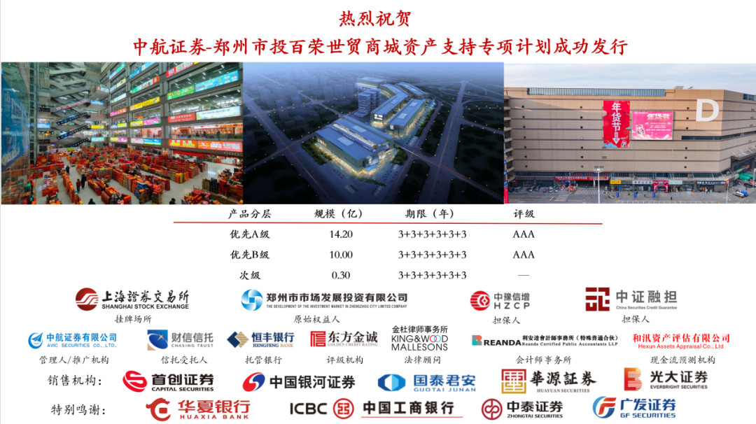 3月28日,鄭州市市場發展投資有限公司(以下簡稱鄭州市投)成功發行“鄭州市投百榮世貿商城資產支持證券(CMBS)”,發行規模24.5億元,優先級證券獲AAA信用評級。